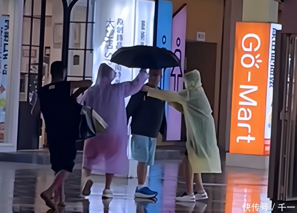 当时正好赶上下雨,同行的三人专门举着伞跟在他身边伺候,避免他被雨水淋到,从画面中还能看到,随行工作人员手中抱着不少购物袋,可能是刚买完东西。