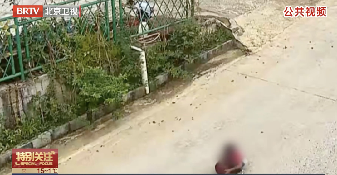 公共视频显示,一名5岁男孩抱着球从自家院子里走出,来到道路中央,并蹲下开始玩球。此时,驾驶员罗某正驾驶面包车左转进入该路段。