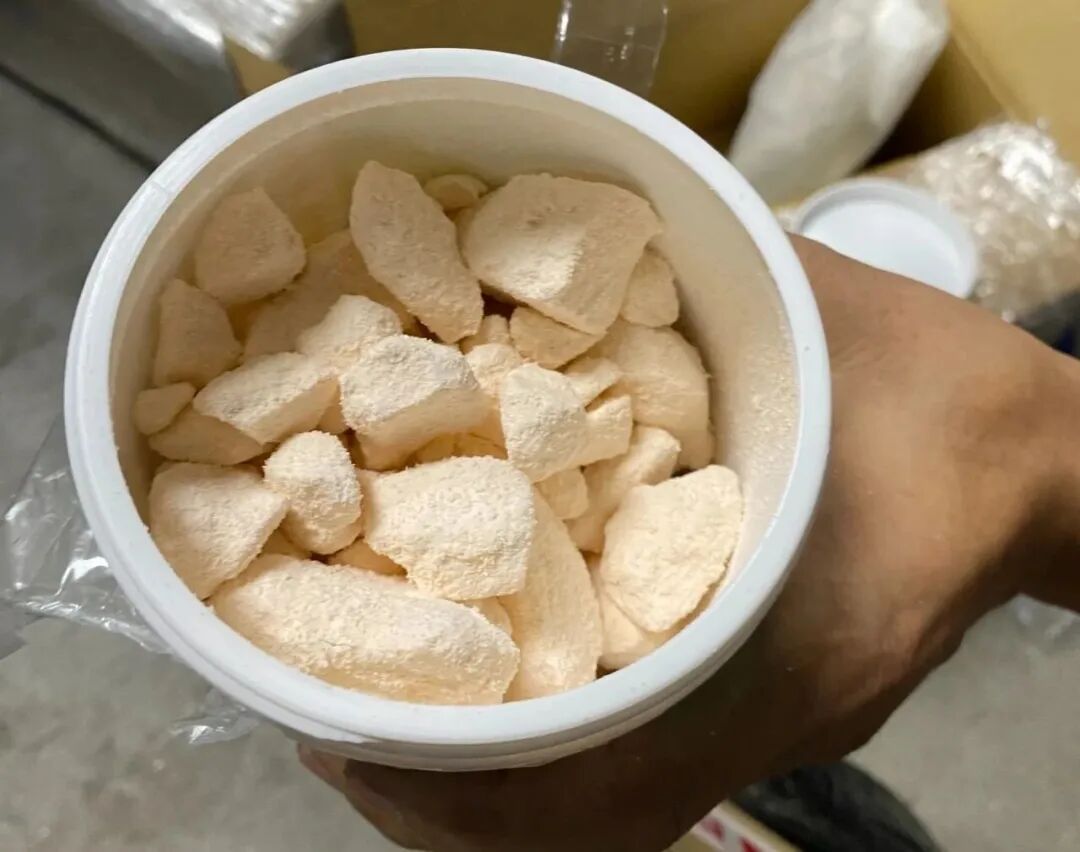 塑料罐内装有大量粉白色块状物品