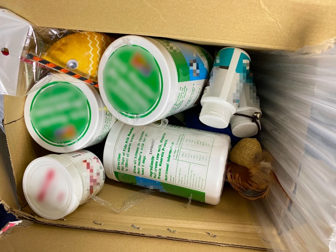 发现包裹内有数个宠物玩具