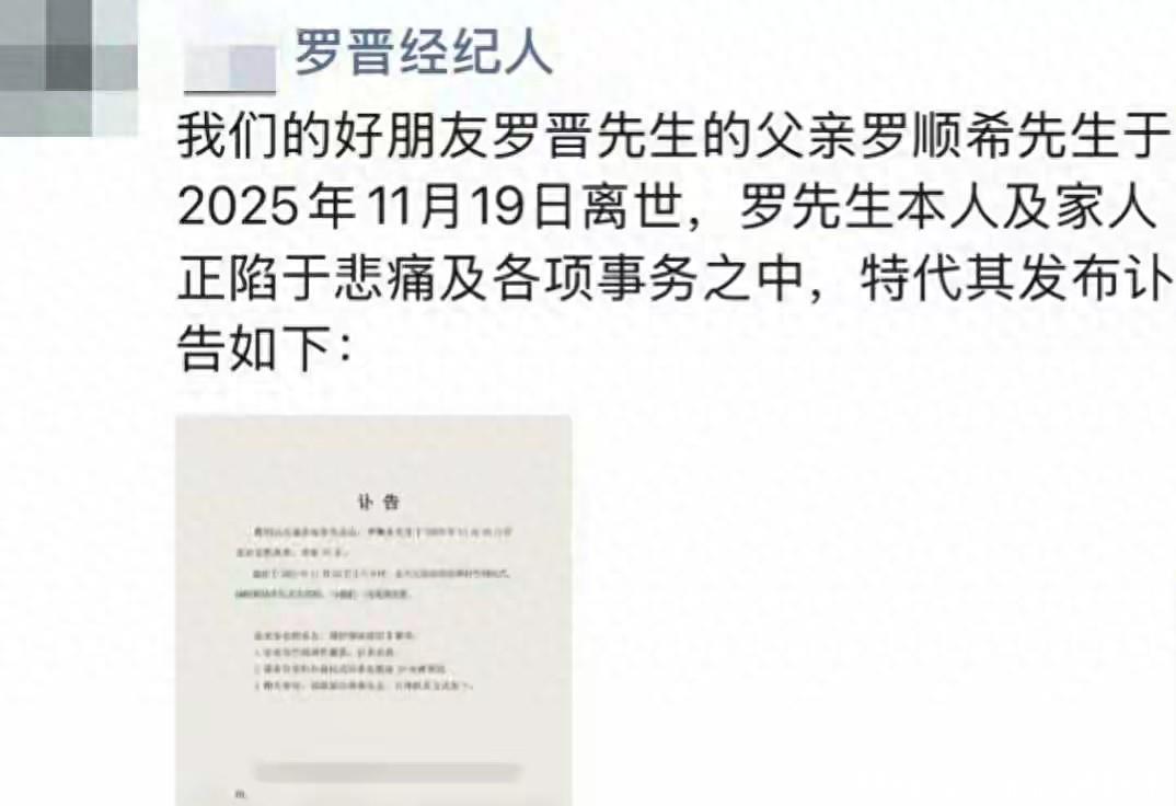 直到讣告出现,一切才说得通。原来那段时间罗晋的状态早就不太对。11月14号他出席微博视界大会,黑色皮衣皮裤,想走帅气路线,但脸色浮肿、眼神疲惫,哪像没事的人。现在回想,恐怕那时候老父亲身体已经不行了,他一边陪护一边赶工作,能撑住就不错了。