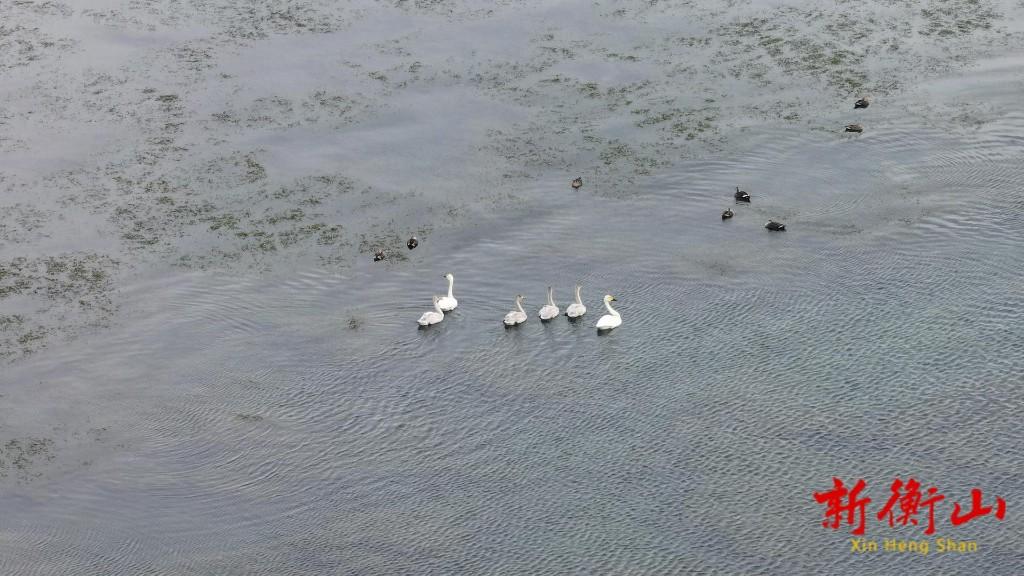 小天鹅是国家二级保护动物,属于雁形目鸭科天鹅属鸟类,体长约110-135厘米。成鸟通体雪白,幼鸟则披着灰褐色绒羽,会在成长过程中逐渐换羽变白。作为典型的迁徙性鸟类,它们每年秋季都会从西伯利亚、蒙古等地出发,跨越千里南飞寻找适宜的越冬地,主要以水生植物的根、茎、叶及小型水生动物为食。而衡山萱洲国家湿地公园洁净的水域、丰茂的水草和安全的栖息环境,正是它们越冬的理想“育儿驿站”。