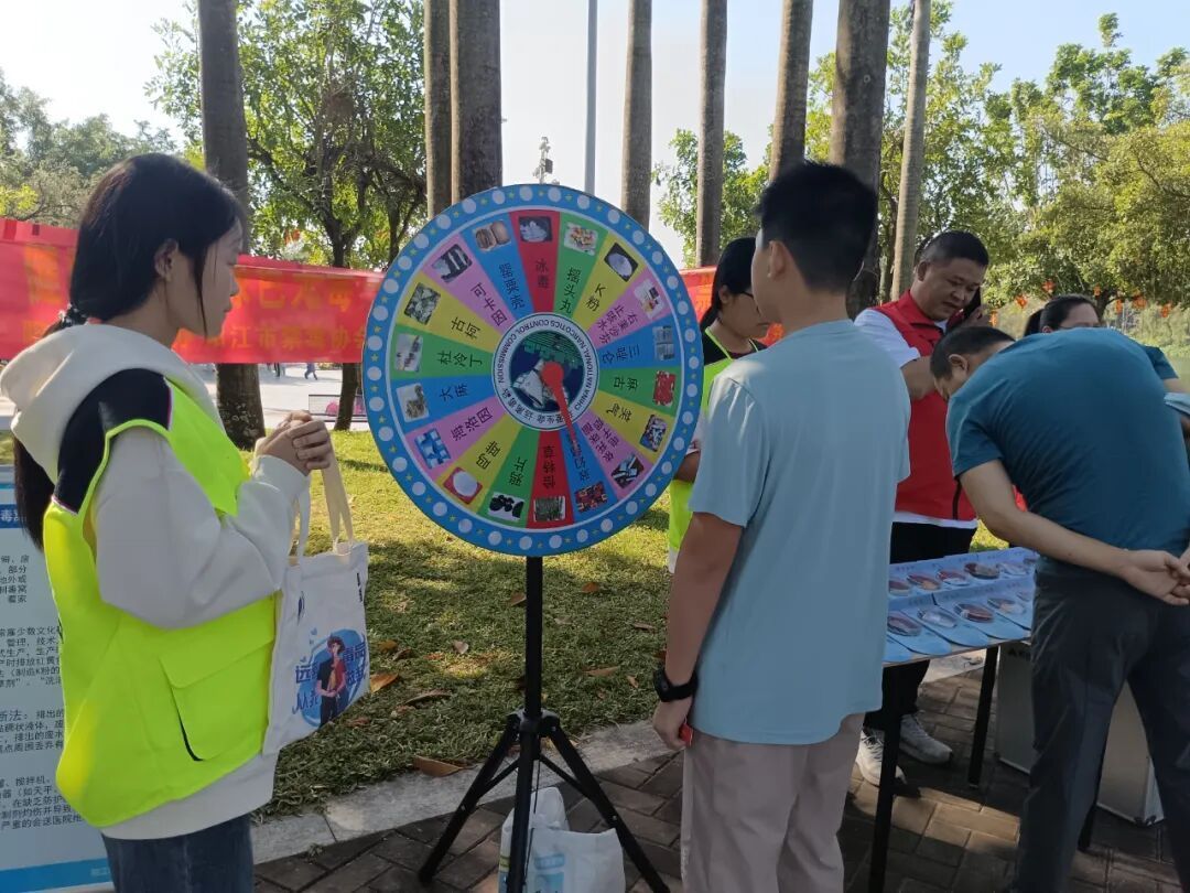活动现场设置了多个互动区域,仿真毒品展示区让群众直观认识毒品形态,禁毒展板区系统展示毒品危害与防范知识,禁毒知识问答与转盘游戏则通过趣味互动,让群众在欢乐中巩固学习成效。志愿者们全程耐心讲解,引导群众树立防毒意识,掌握拒毒技巧。