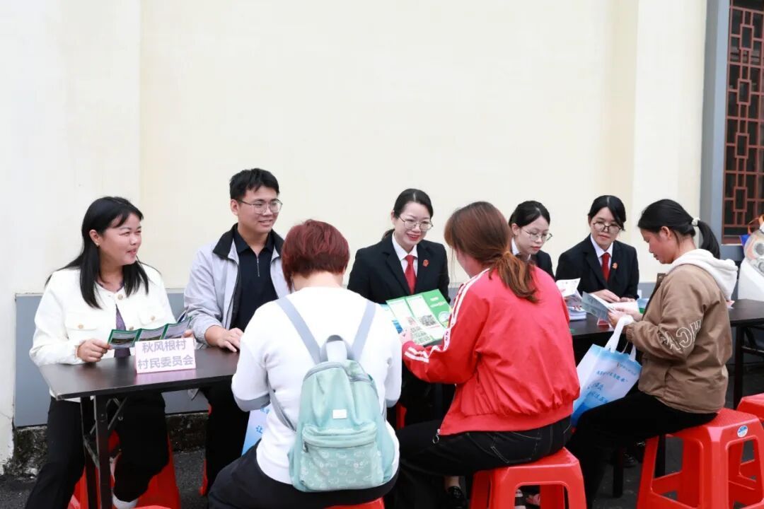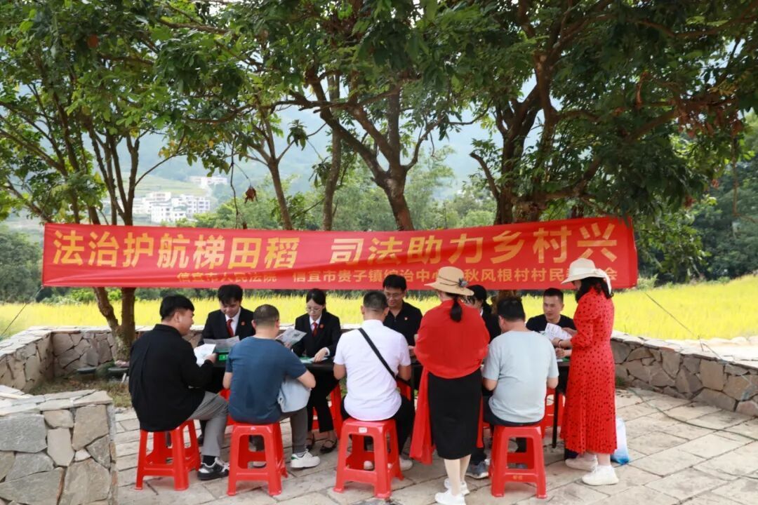 近日,信宜市人民法院联合贵子镇平安法治办深入秋风根村,开展以“法治护航梯田稻,司法助力乡村兴”为主题的法治宣传活动,聚焦乡村常见法律问题,并融入禁毒宣传内容,守护村民的安全与权益。