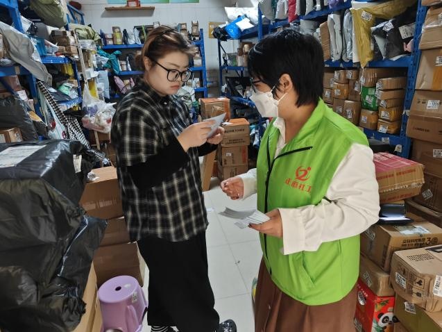 11月11日,潮安区庵埠镇平安法治办在辖区快递站点开展禁毒宣传活动。