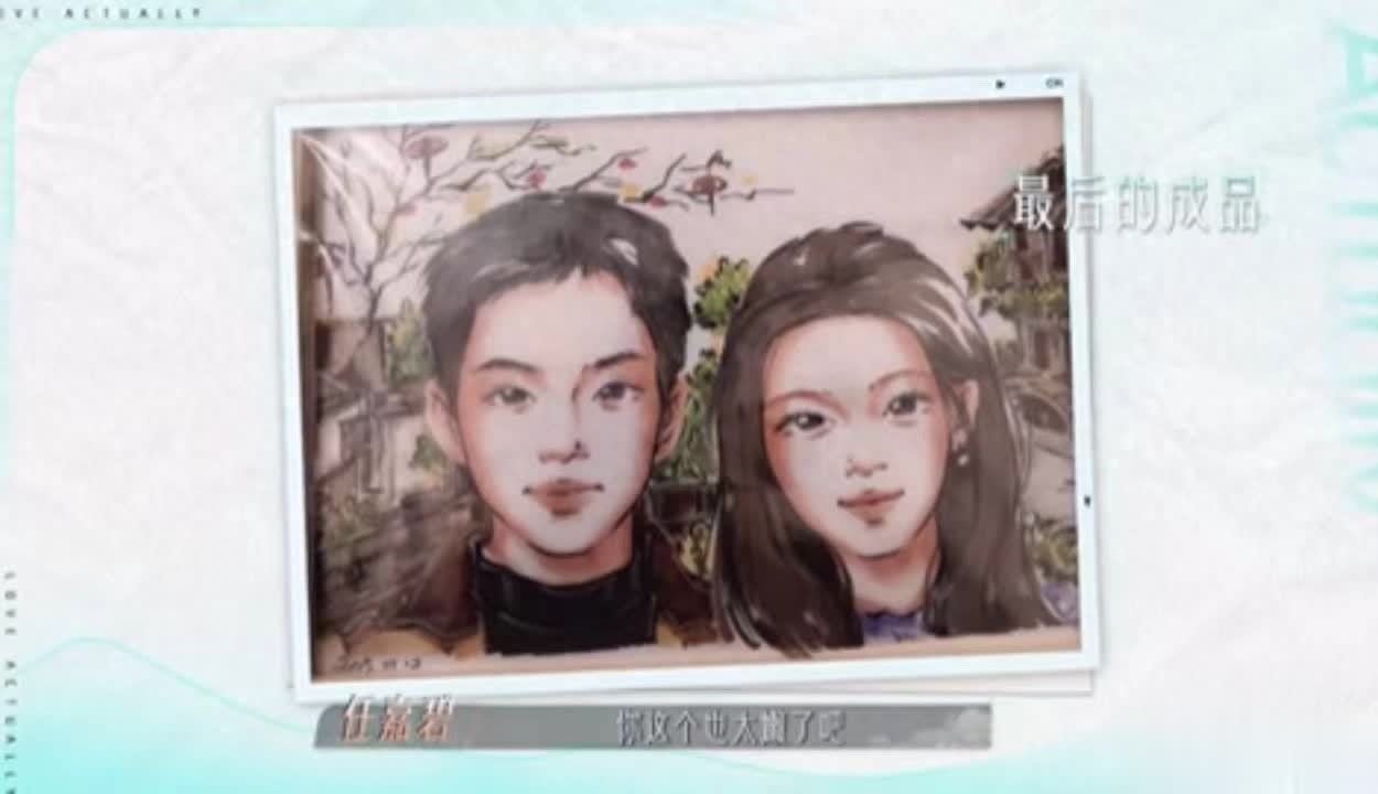 他选的纪念品,也要包含她的元素。要一张他们的合画。期间侯成杰一直在监工,成品非常好。